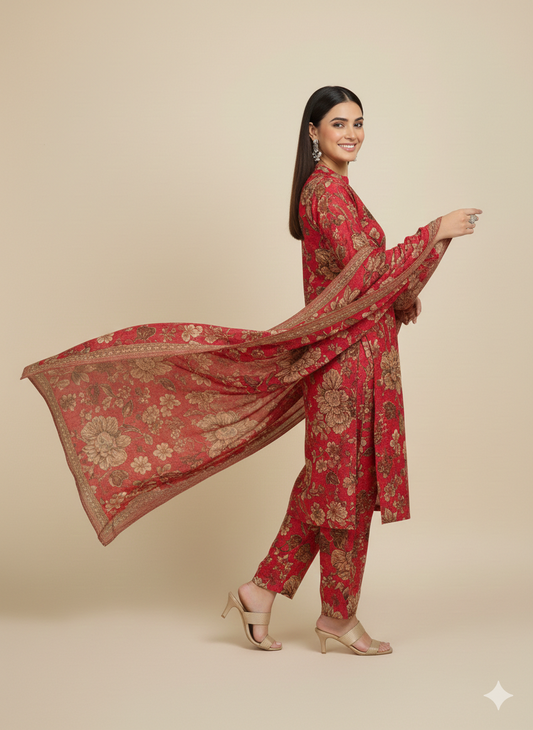 Sale price Rs.3,899.00 PKRRegal Sophistication in Every Stitch. Step into elegance with our Royal Maroon Regency ensemble. This premium 3-piece suit is designed for the woman who appreciates the fine balance between traditional heritage and modern luxury. Drenched in a deep, soulful maroon, the outfit features masterful digital illustrations of floral landscapes and geometric borders that create a truly high-definition fashion experience. Key Features: Fabric: Ultra-smooth, high-thread-count premium... -